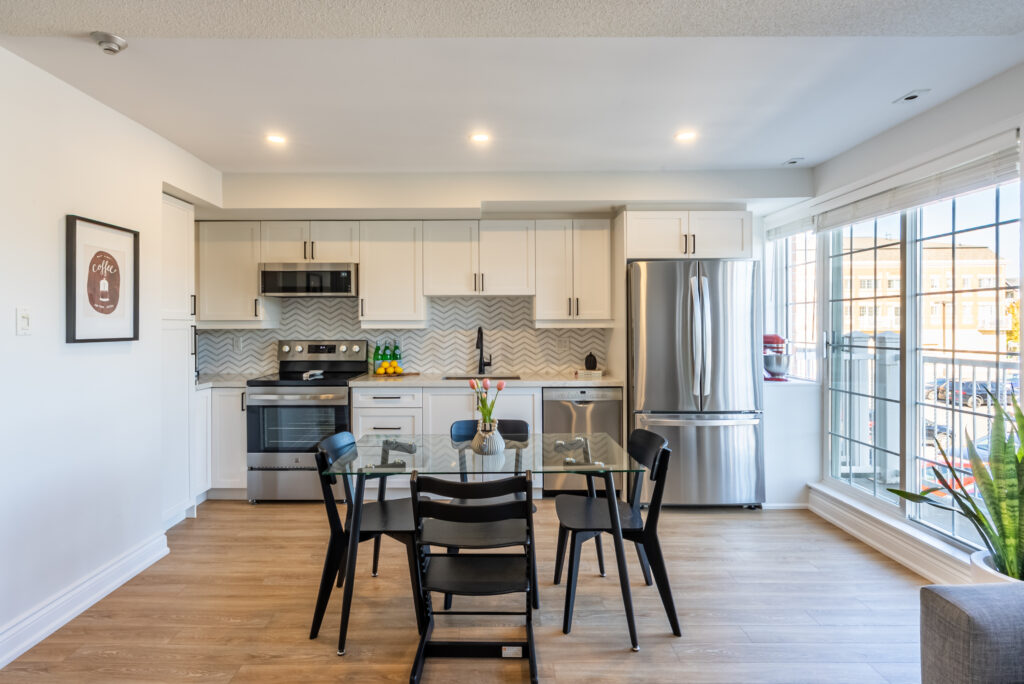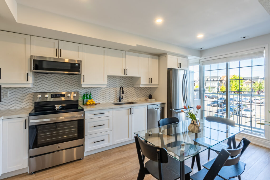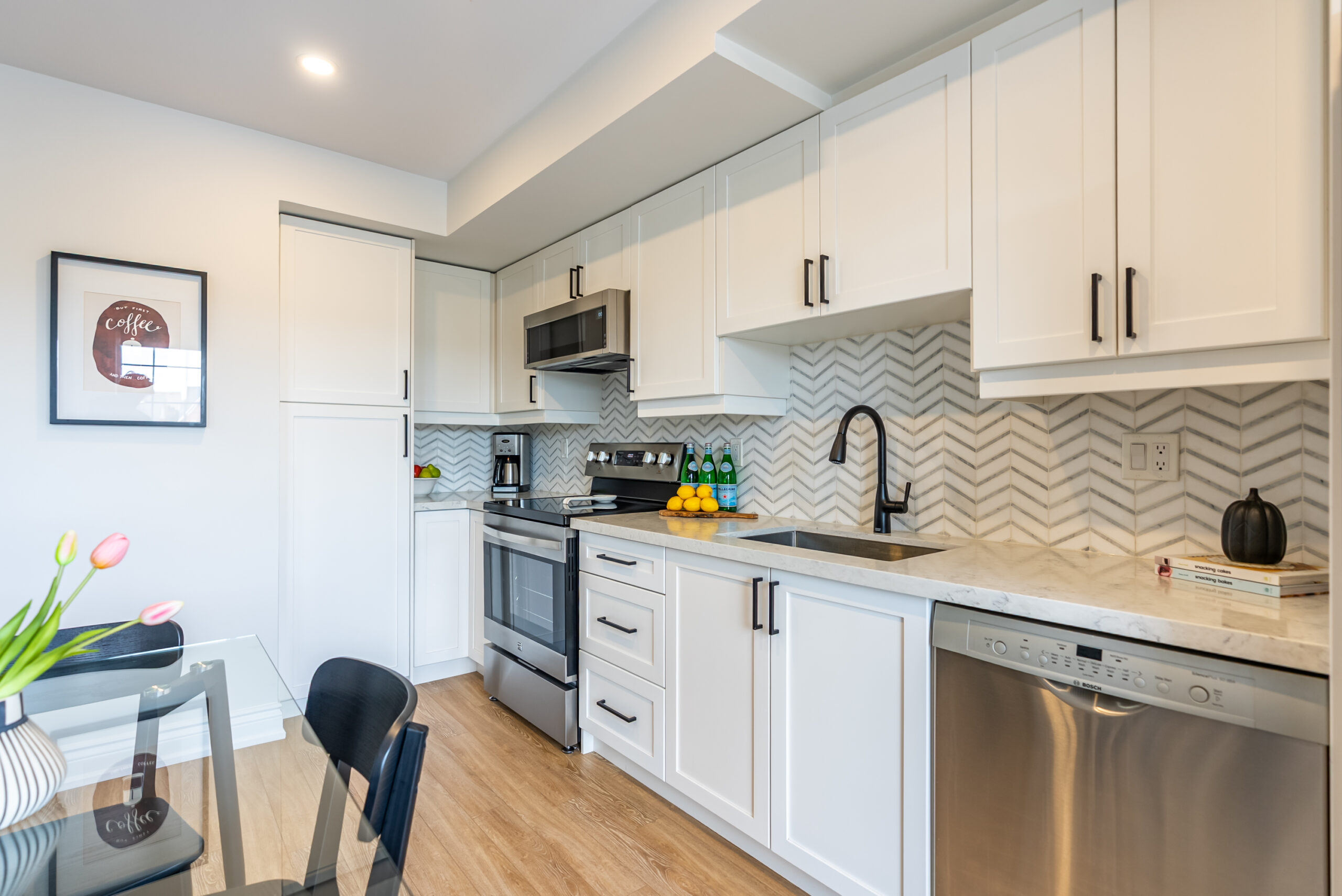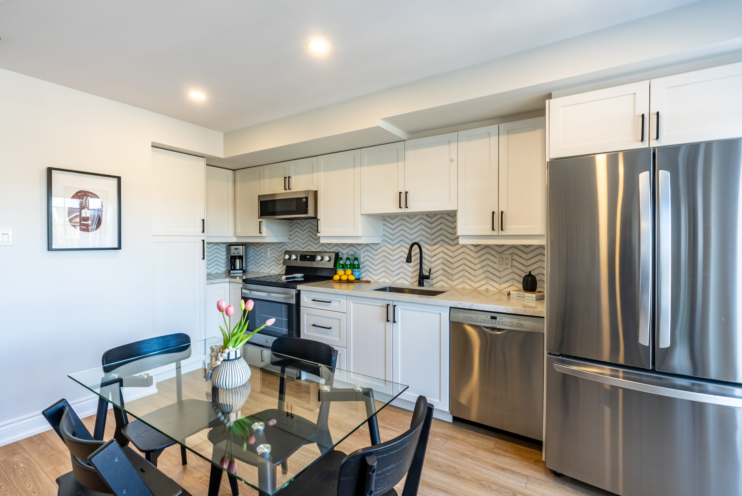 Fully renovated kitchen with a sleek, modern design, featuring stainless steel appliances and smart layout for maximum efficiency